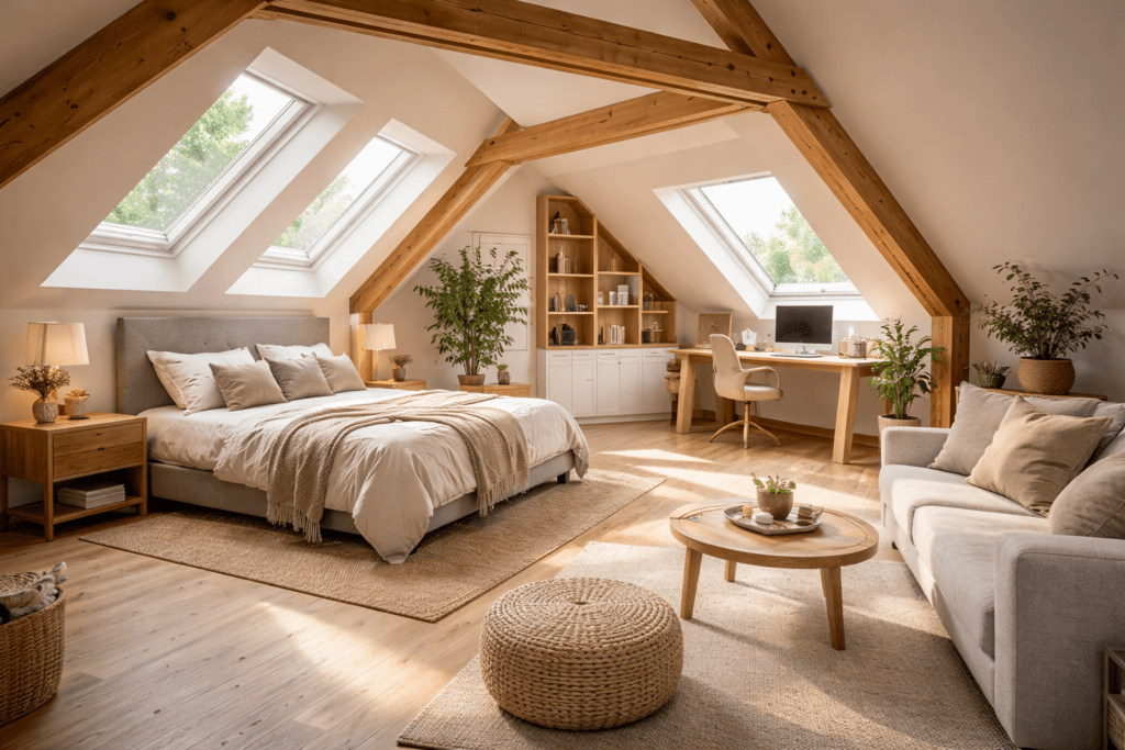 Aménagement de combles : transformez vos espaces inutilisés en pièces de vie confortables, lumineuses et parfaitement adaptées à vos besoins.
